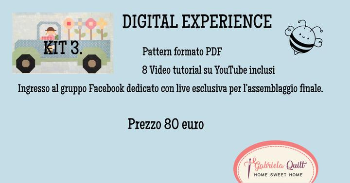 uoi realizzare il quilt del camioncino fiorito usando i tuoi tessuti? La Digital Experience è pensata proprio per te! Avrai accesso a tutta la parte didattica e tecnica del progetto Bussy Bee, comodamente da casa tua e senza spese di spedizione.