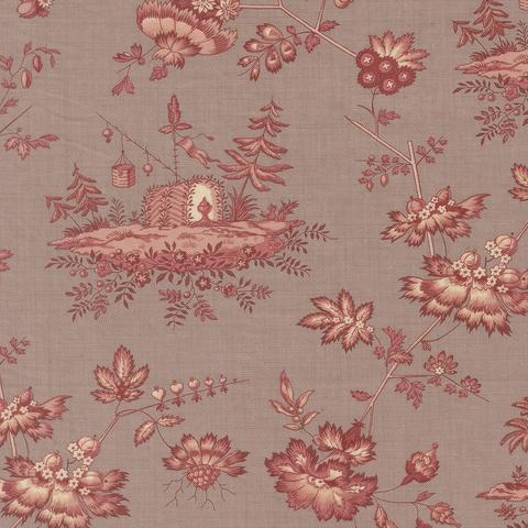 In questa raffinata versione della collezione Fleur de Paris, l'eleganza narrativa del Toile de Jouy si posa su un fondo Lavender. Il contrasto tra il viola polveroso della base e le scene classiche stampate in rosso antico crea un accostamento cromatico sofisticato e tipicamente francese, perfetto per donare un tocco di nobiltà rurale ai tuoi progetti.