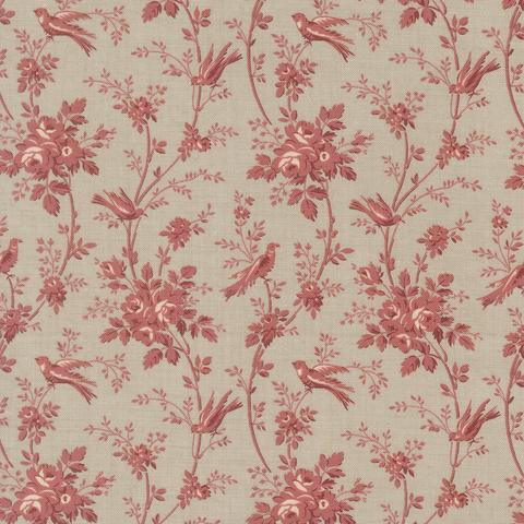 In questa incantevole variante della collezione Fleur de Paris, l'idilliaco motivo botanico con uccellini e rose è declinato nel classico rosso Garance. Il contrasto tra il rosso antico del disegno e il fondo neutro Pearl conferisce al tessuto un aspetto d'epoca straordinario, richiamando le antiche tele stampate francesi. La delicatezza dei tratti degli uccellini in volo o posati tra i rami rende questa stampa perfetta per progetti di quilting e home decor che ricercano un'eleganza classica e senza tempo.