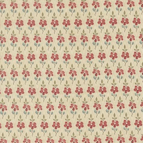 Colore: Fiori in rosso antico e foglioline verde salvia su fondo Pearl (avorio).