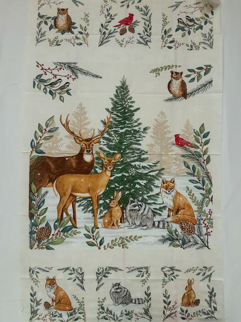 9 Tagli di Tessuto Coordinati: Ogni taglio misura 50 x 110 cm, garantendoti un'ampia metratura per giocare con i motivi iconici della collezione (pini, cervi, fiocchi di neve e texture boschive).
