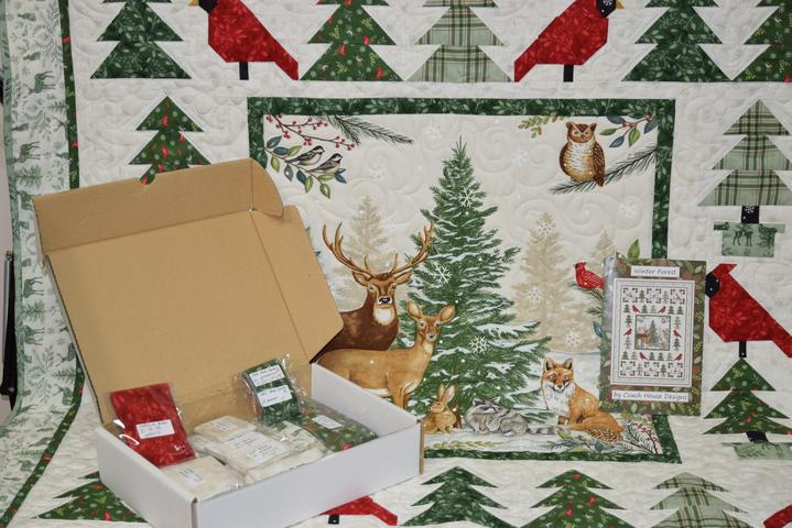 Questo kit contiene tutto l'occorrente per realizzare il top della trapunta "Winter Forest", con una dimensione finale di 130 x 175 cm.
