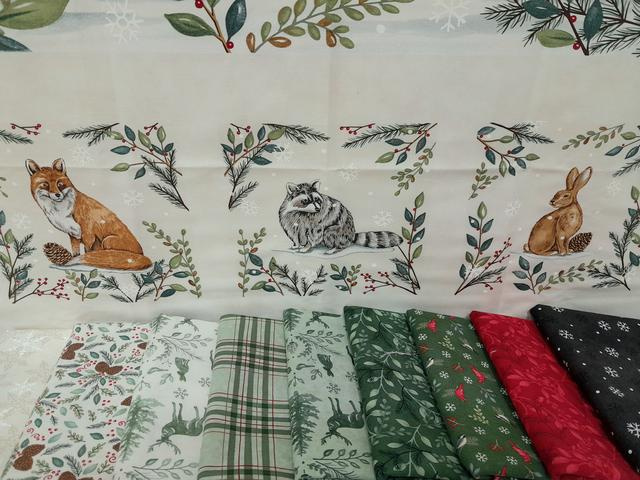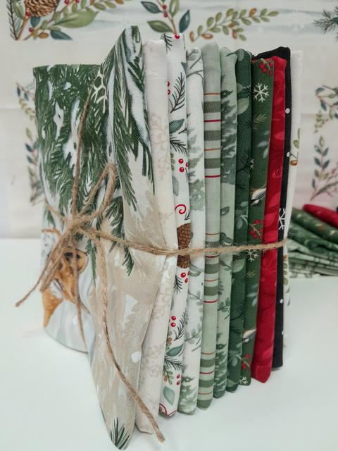 9 Tagli di Tessuto Coordinati: Ogni taglio misura 50 x 110 cm, garantendoti un'ampia metratura per giocare con i motivi iconici della collezione (pini, cervi, fiocchi di neve e texture boschive).