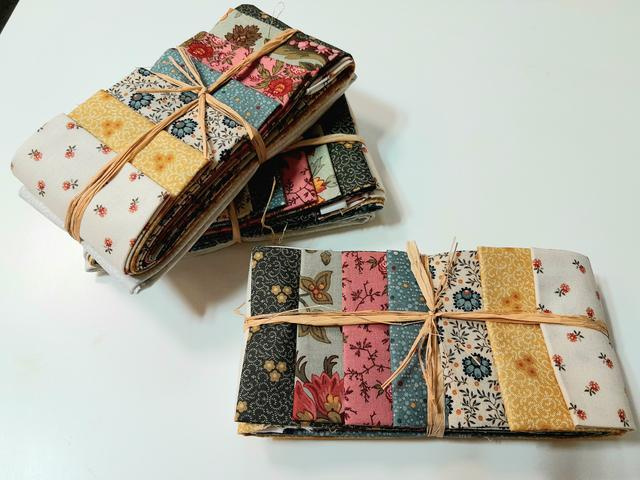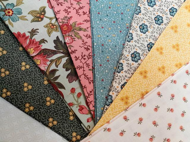 7 Fat Eighths: Sette tagli selezionati 25 \ 55 cm ciascuno) in una palette che spazia dal rosso antico al senape, fino al verde salvia e al panna.