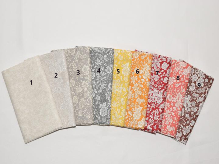 Fat Quarter singoli (50 x 55 cm circa) della collezione LIBERTY "Emily Belle", in morbido cotone con delicate fantasie floreali. Perfetti per patchwork, quilting e cucito creativo.
